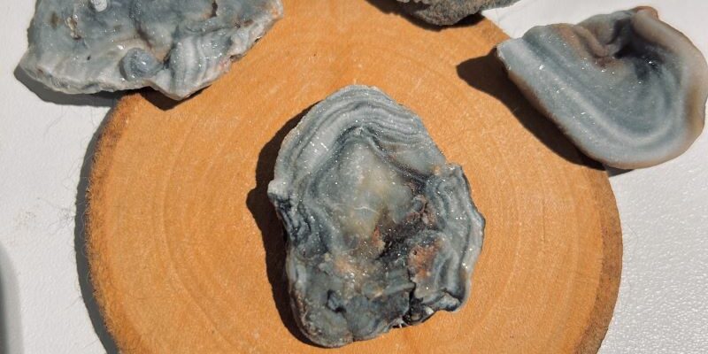 La Calcédoine fleur est rare et très jolie, avec ses micros cristaux avec ses formes et ses dessins auréolés qui la font ressembler à des pétales de fleurs.