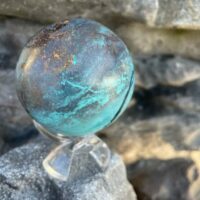 La QUANTUM QUATRO, Cette sphère et tout juste magnifique et rare. Elle est polie/dégrossie, on vois et sent des creux et des bosses. De qualité extra, c’est une pierre très rare, que l’on ne trouve presque plus.